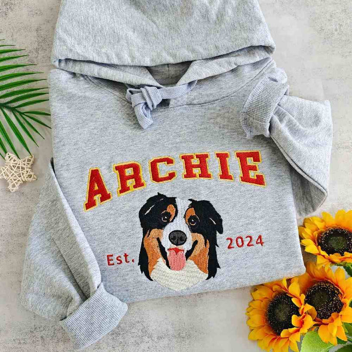 Immortalize your furry friend! Custom embroidered pet portrait EST sweatshirt for pet lover